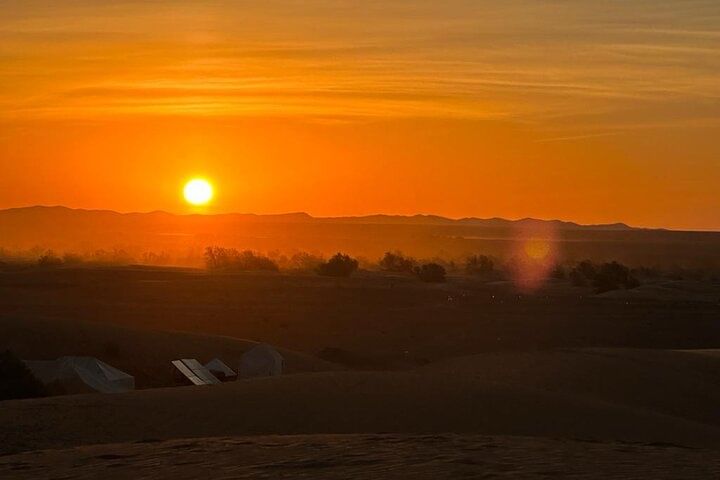 Embark on a private journey from Marrakech to the Merzouga Desert, spend a night in a Bedouin camp, and explore the stunning Erg Chebbi dunes and Ouarzazate.
