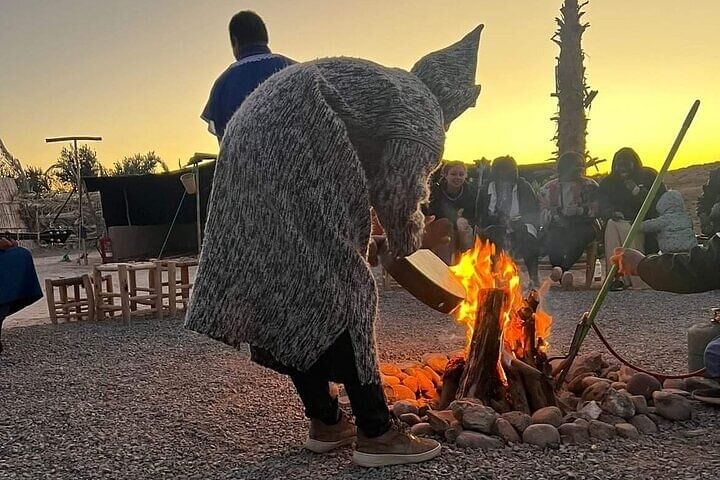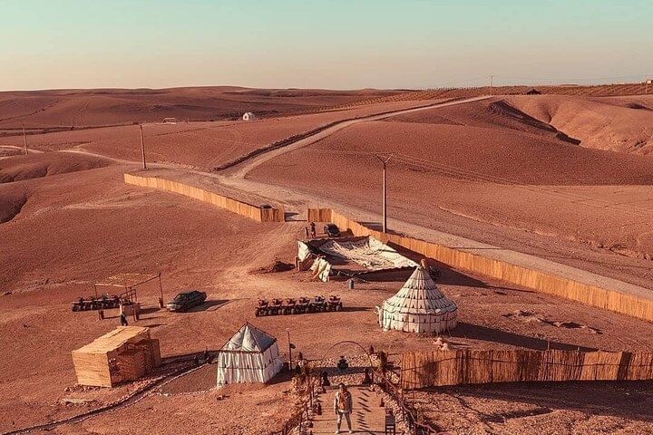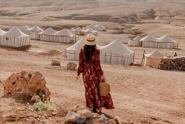 Take a break from the bustling streets of Marrakech and spend an evening in the Agafay desert for an evening under the stars. Begin with private pickup from your accommodation and a ride to a desert camp. Enjoy a camel ride into the sunset, watching as the sky changes from blue to yellows, pinks, and oranges.