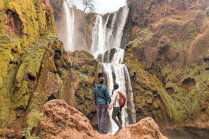 Explore the stunning Ouzoud Waterfalls, spot playful monkeys, and savor a traditional tajine in a local restaurant.