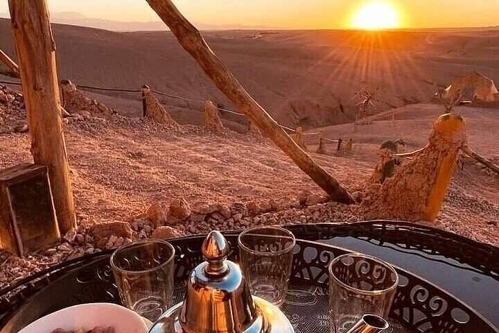 Enjoy a unique and unforgettable experience in the desert as you ride a camel along its dunes and enjoy a traditional music with local people.